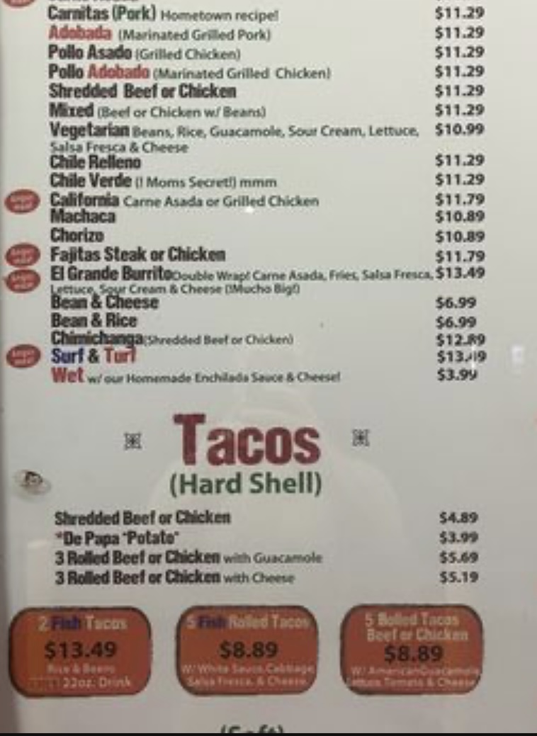 Cotijas Taco Shop Menu